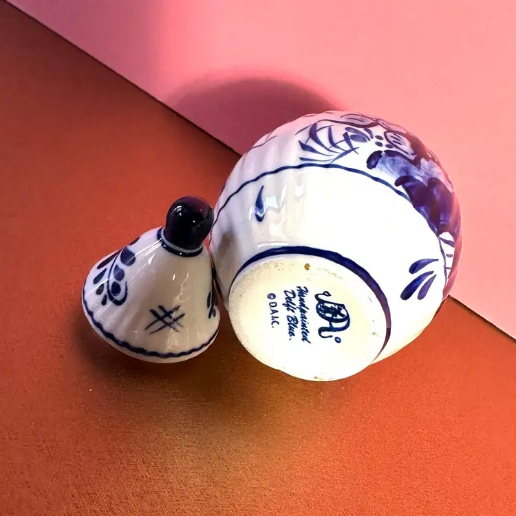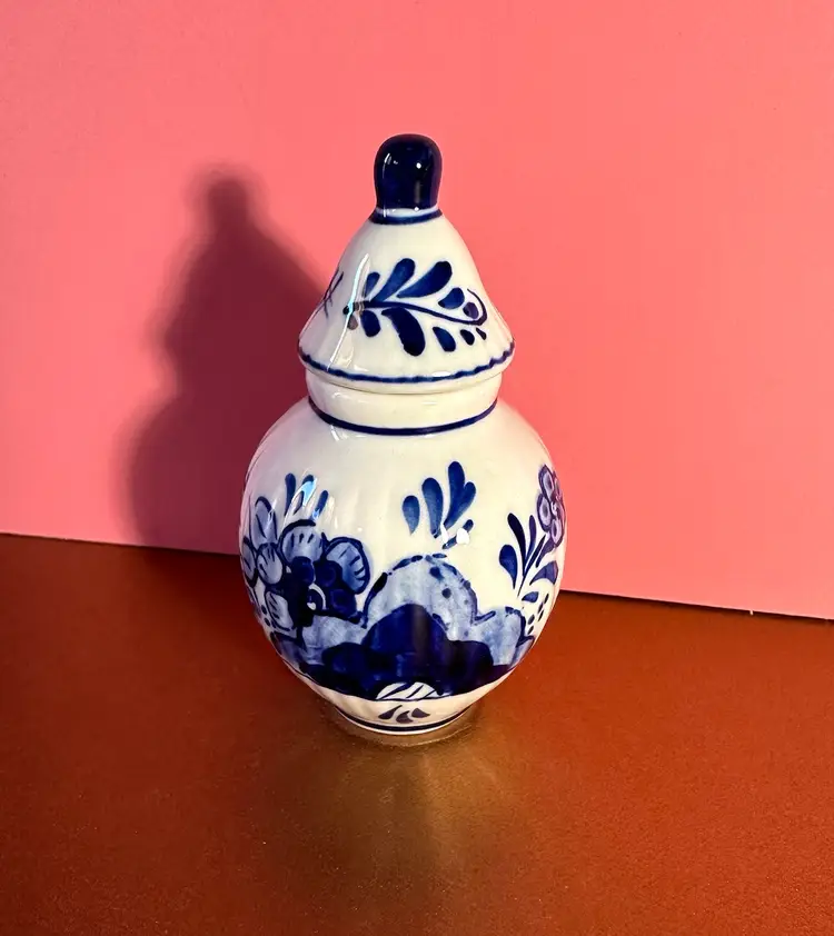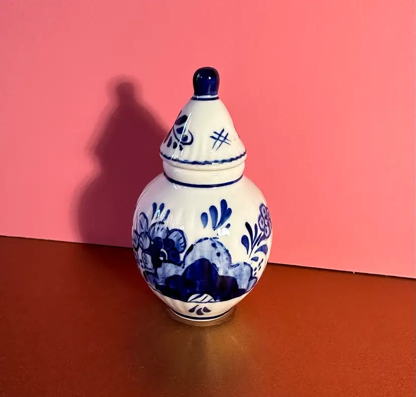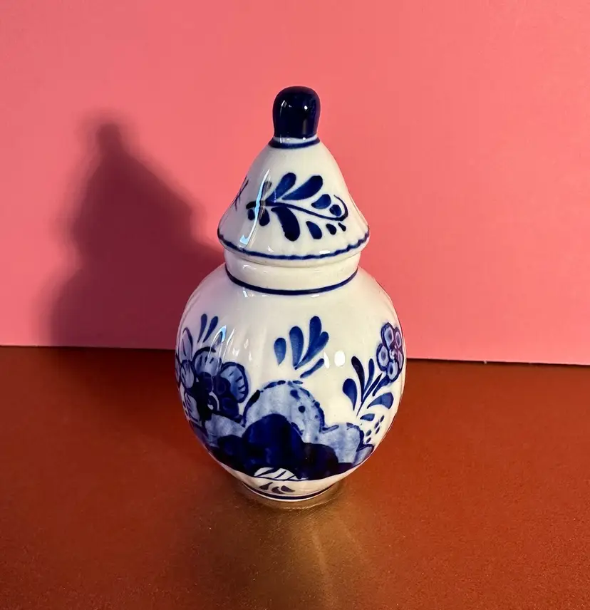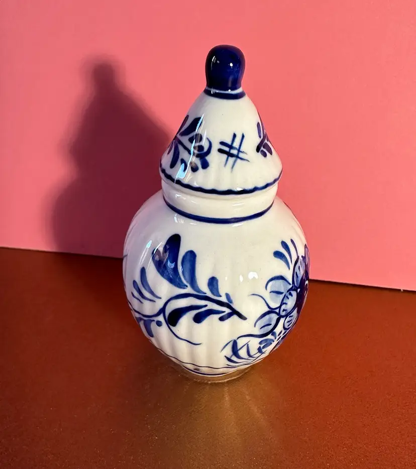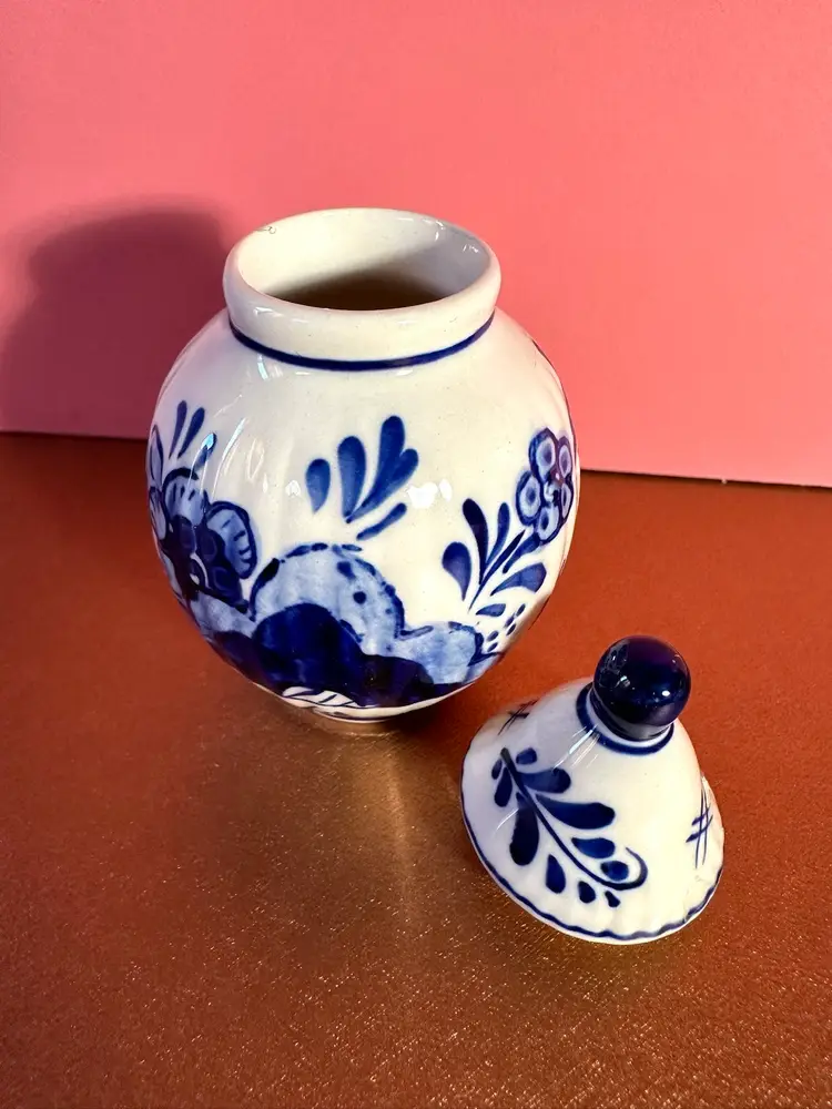 Ceramic mini ginger jar signed hand painted from Holland Delft blue decoration no issues noted🍒
