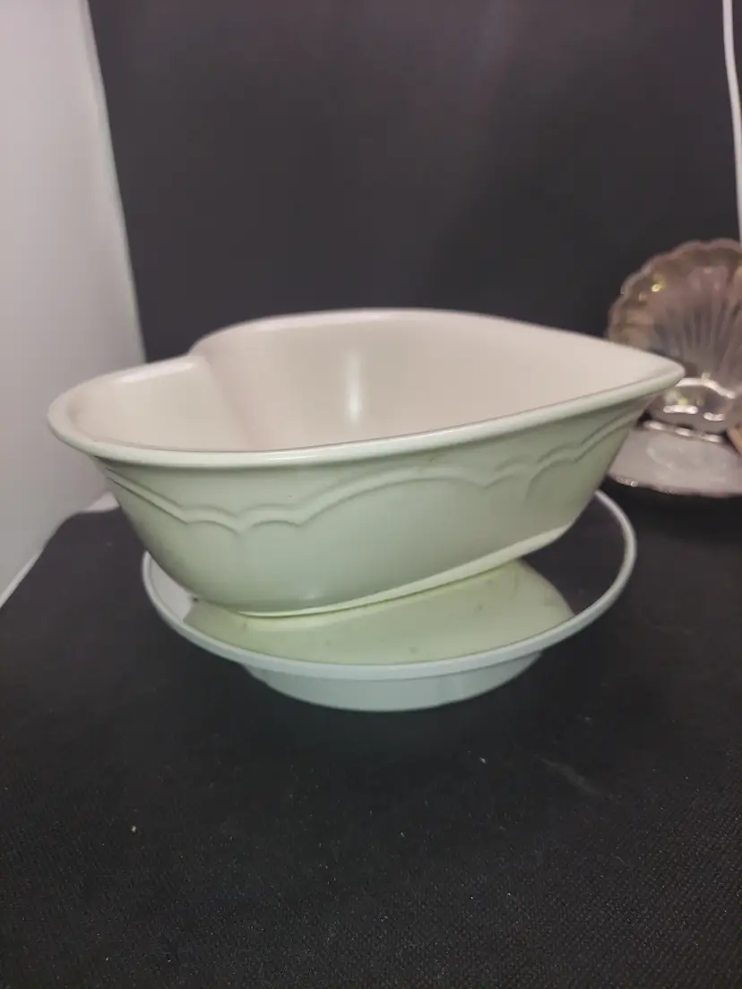 The Vintage Pfaltzgraff Heirloom Heart Dish Bowl is a charming and decorative serving bowl made of stoneware in white ivory color. This bowl is so plain yet so sweet and will match with any decor on your serving table! Crafted in the USA in 1980, this limited edition piece features a heart-shaped design in a solid creamy white with an ash glaze finish. With a traditional style and a capacity of approx 3 cups, this dish bowl is a unique piece perfect for American-themed decor and pottery collectors. The Pfaltzgraff brand ensures quality and craftsmanship, making it a timeless addition to any home. It is pre-lived but in Fantastic condition with No chips, No cracks and No stains. Please see the PEAR shaped bowl I have up for sale also!!
