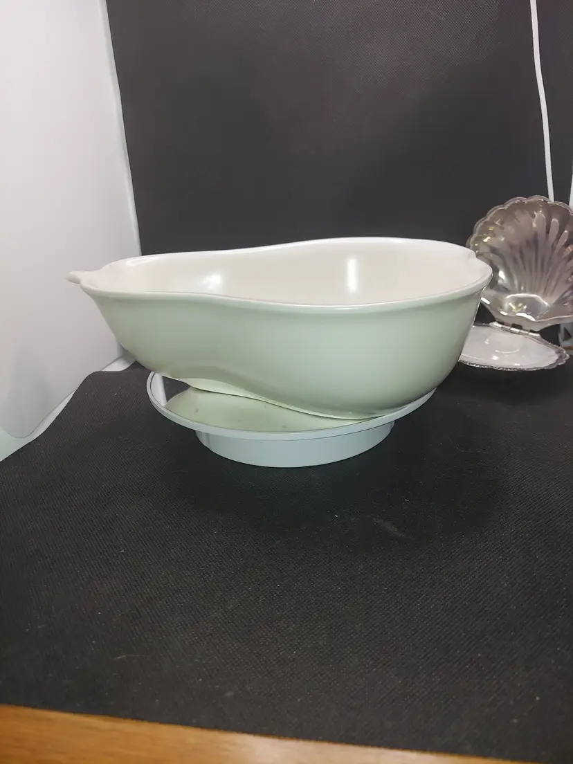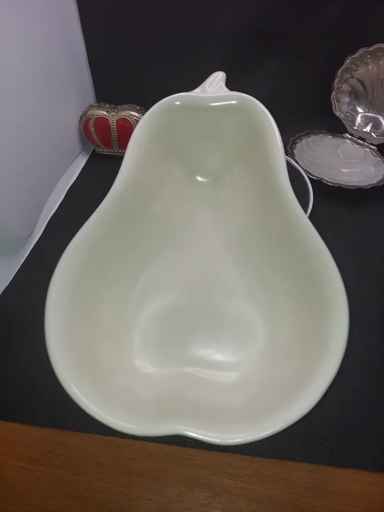 This vintage Pfaltzgraff stoneware heirloom pear-shaped serving bowl dish is a rare find from the United States, crafted in 1980. The stylish home decor piece features a glossy creamy white finish and a contemporary style, perfect for adding a touch of American charm to any table setting. This unique and original dish, with its oval shape is a collectible item that showcases the art pottery production style of Pfaltzgraff. This is such a Fun piece, I can see cut up different colored PEARS in it on Fall table!! This will match with every decor. It is Pre-loved but in Fantastic condition with NO chips, NO cracks and NO stains. Please check out the HEART Shaped dish I'm selling also!