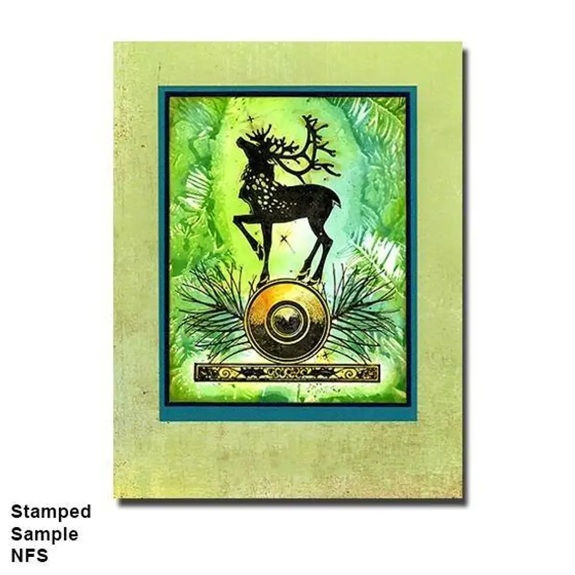 Vintage Reindeer On Ball Christmas Rubber Stamp
