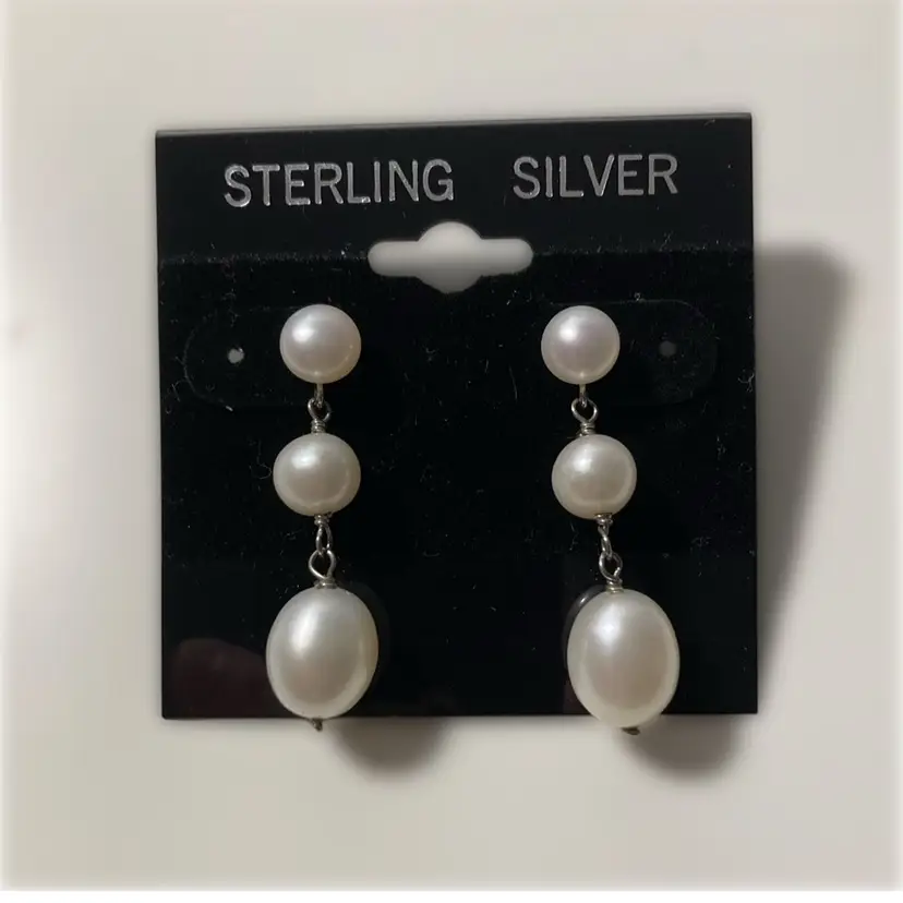 Vintage sterling silver triple pearl drop earrings. Earrings drop 1 1/3". Marked 925.
