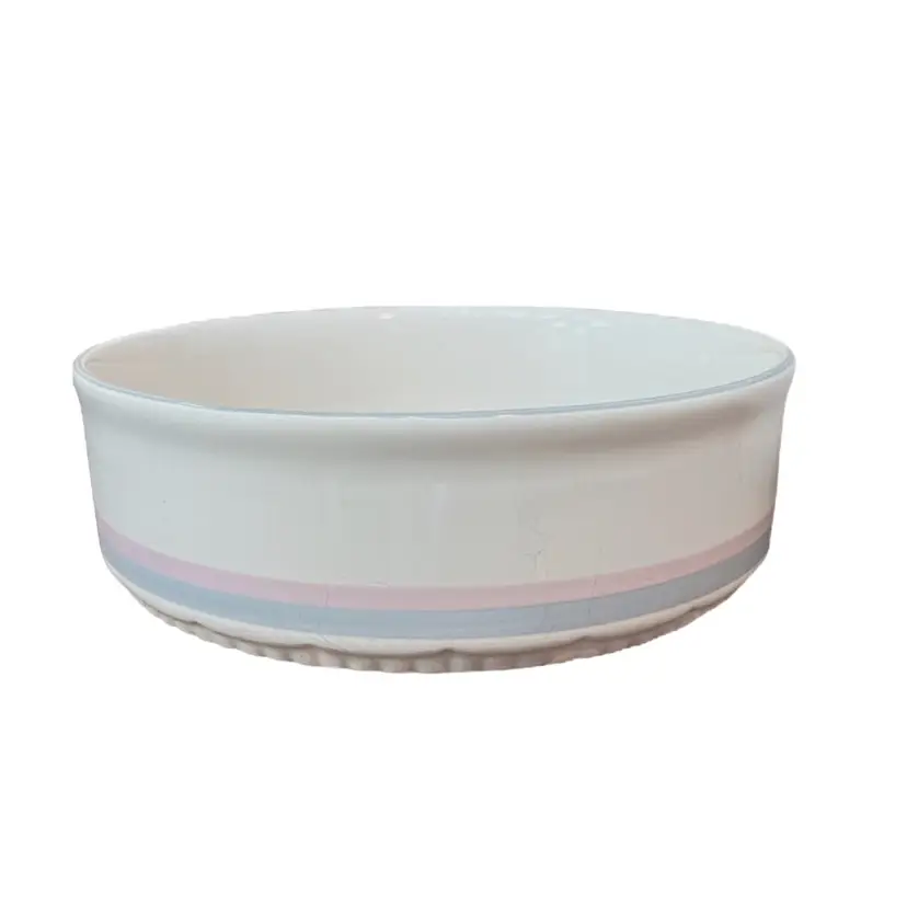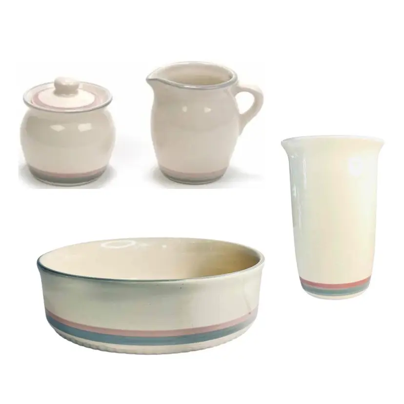 👉Purchase Separately Below 👉"Pink Aura" Pattern 1986 👉 Ivory Glaze Pink and Blue Stripes 👉”Juniper”Pattern 1994 Teal Green Mauve Stripes 👉 * Utensil Marks on Dessert Casserole Dish 👉No Chips or Cracks 👉Review Photos for Best Condition Description 👉Sold as Shown
