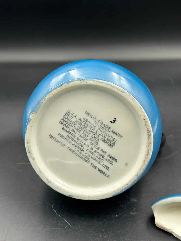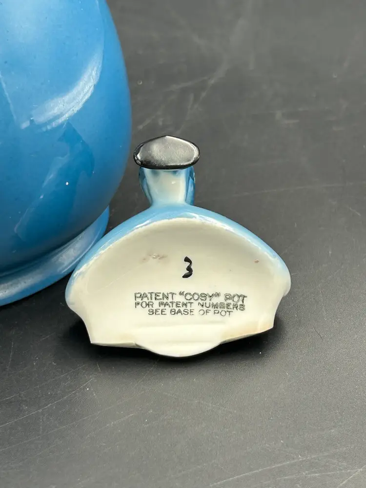 Vintage Wood & Sons “ Cosy” Teapot With Lid Blue With Black Handle England