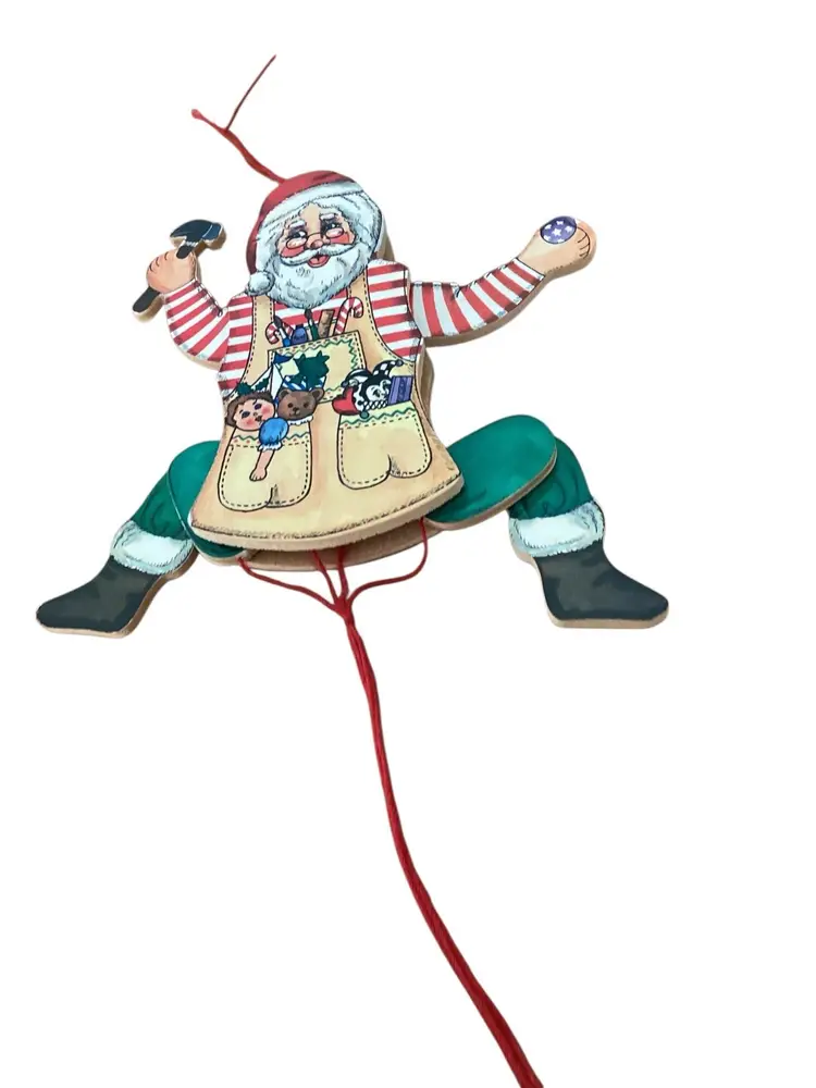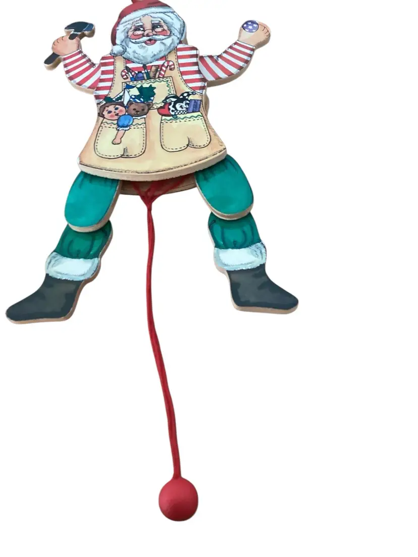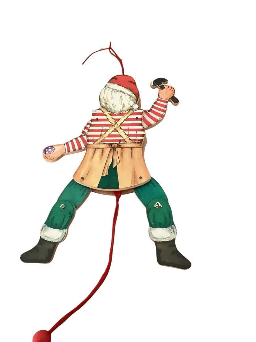 This Vintage Wood Pull String Christmas Ornament features a Santa Claus character design, perfect for the holiday season. The medium-sized ornament is made of wood and showcases a unique jumping jack style, adding a vintage touch to any Christmas tree. With a multicolor design and handcrafted details, this original ornament is a delightful addition for adult collectors looking to add a nostalgic charm to their holiday décor.