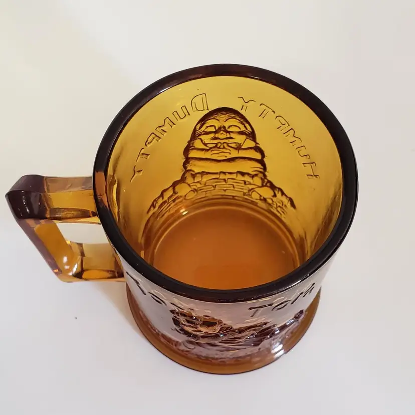 Tom Tom the Piper's son and Humpty Dumpty vintage nursery rhyme mug. Very cute, no chips or cracks. Small, about 3.75 in tall and almost 3 in across the top.