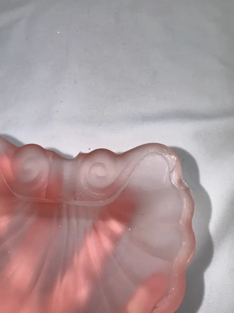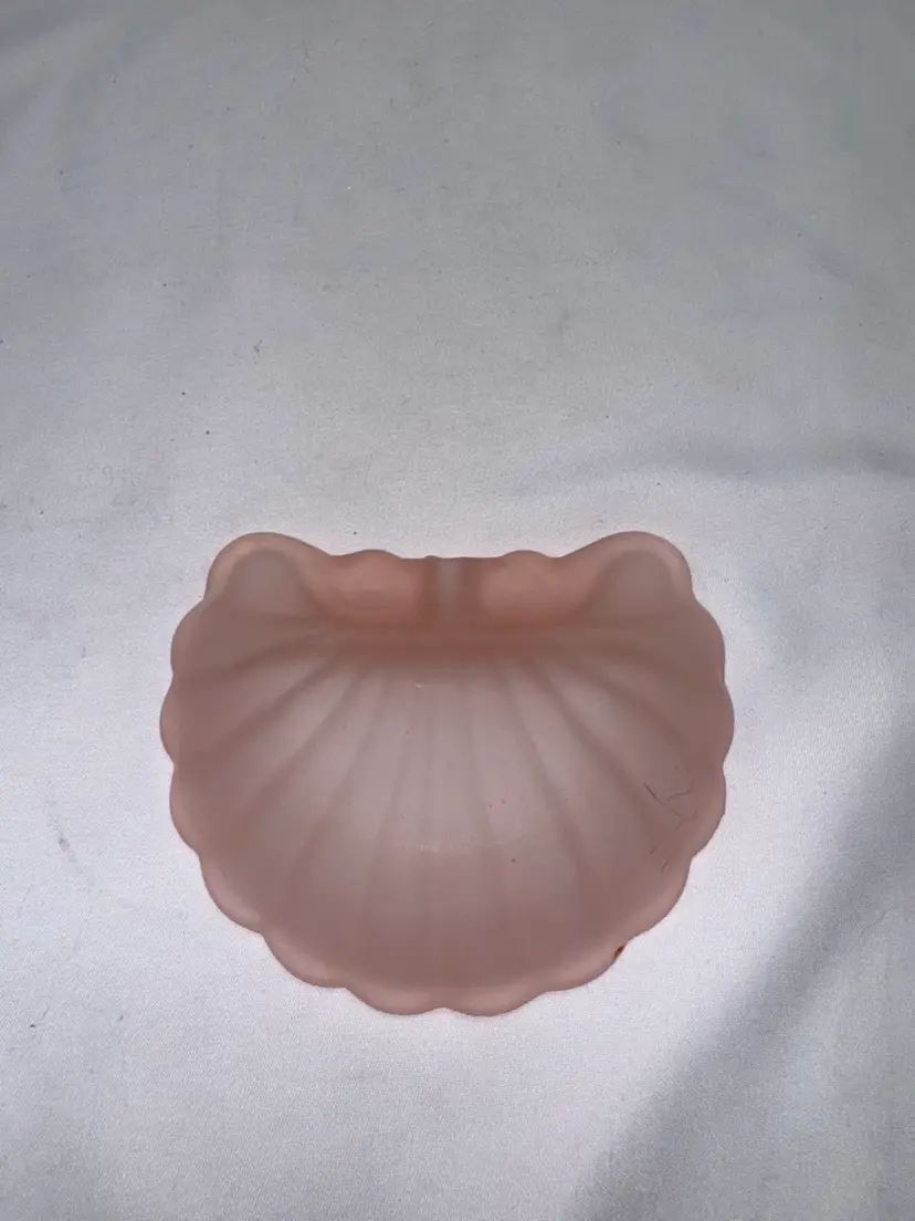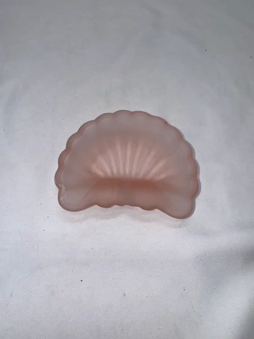 Vintage art deco pink shell-shaped satin glass ashtray. Perfect for adding a touch of style to any space. This does have a few small chips. I have included pictures. See pictures for measurements.