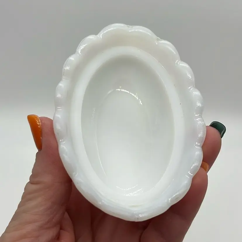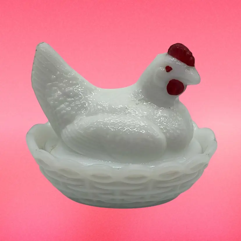 Flashed red on rooster. Marked WM. No chips or cracks. Great vintage condition. Approx: 2.75” h x 3.5” L x 2.5” d