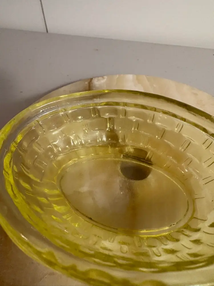 This Yellow Glass Rabbit Bunny in a basket Trinket Box / Candy Dish is a charming addition to any Easter collection. Made of glass and featuring a rabbit design, this trinket box is perfect for storing small treasures or candies. The box packaging adds to its appeal, making it a beautifully presented piece for display on any table or shelf. With its compact dimensions of 4.5 inches in length and 3 1/4 inches in width, this trinket box is a delightful Easter decoration that brings a touch of springtime to any home.