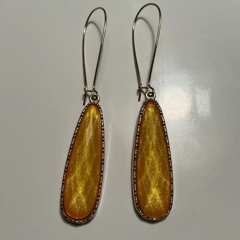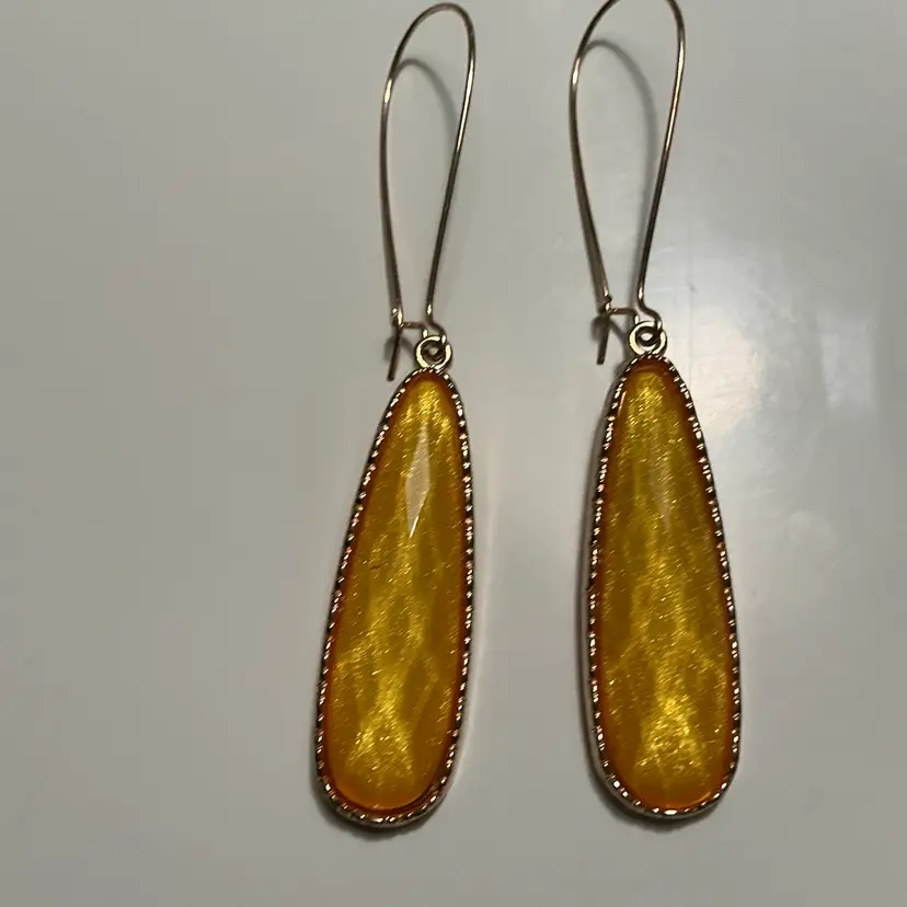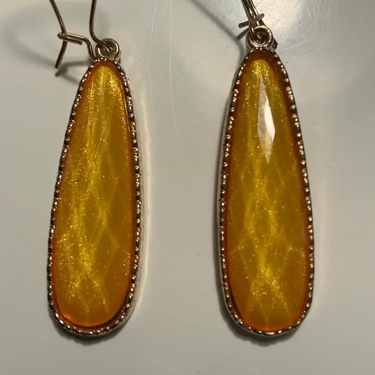 The Yellow Pierced Dangle Drop Catherine Malandrino Earrings in Gold Tone. Featuring a teardrop shape and a French wire closure, these earrings are perfect for those who appreciate a classic and timeless style. The vibrant yellow color of the main stone adds a pop of color to your look. Comes from a non smoking home.