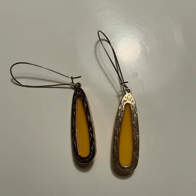 Yellow Pierced Dangle Drop Catherine Malandrino Earrings Gold Tone